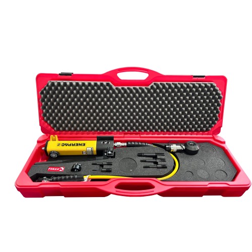 Bomba con manguera y cilindro a elegir de 8Tm o 14Tm, según necesidades.
